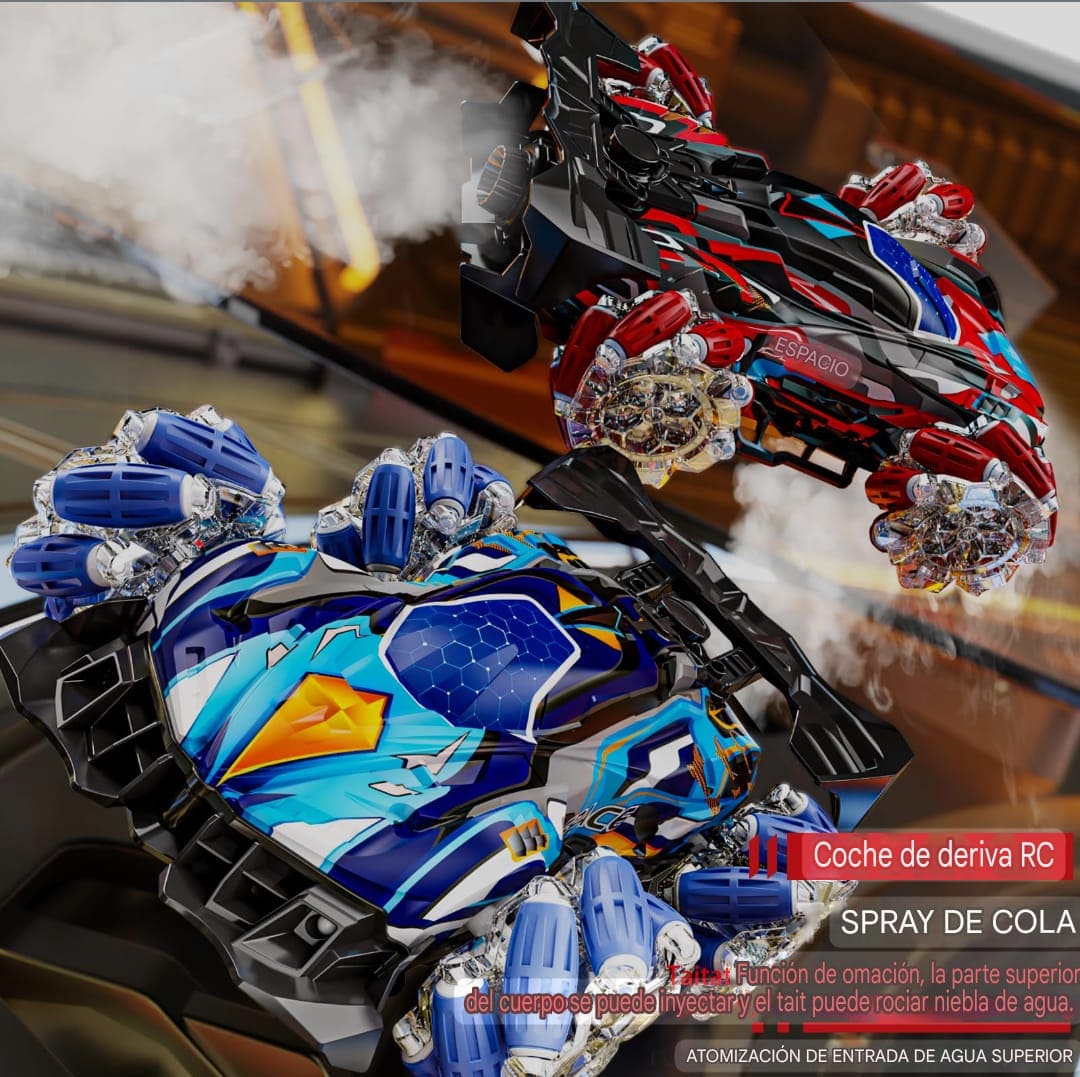 Con tracción en las cuatro ruedas, luces LED, música y una sorprendente función que al agregarle agua emite humo por la parte posterior, haciendo que las carreras sean aún más emocionantes.