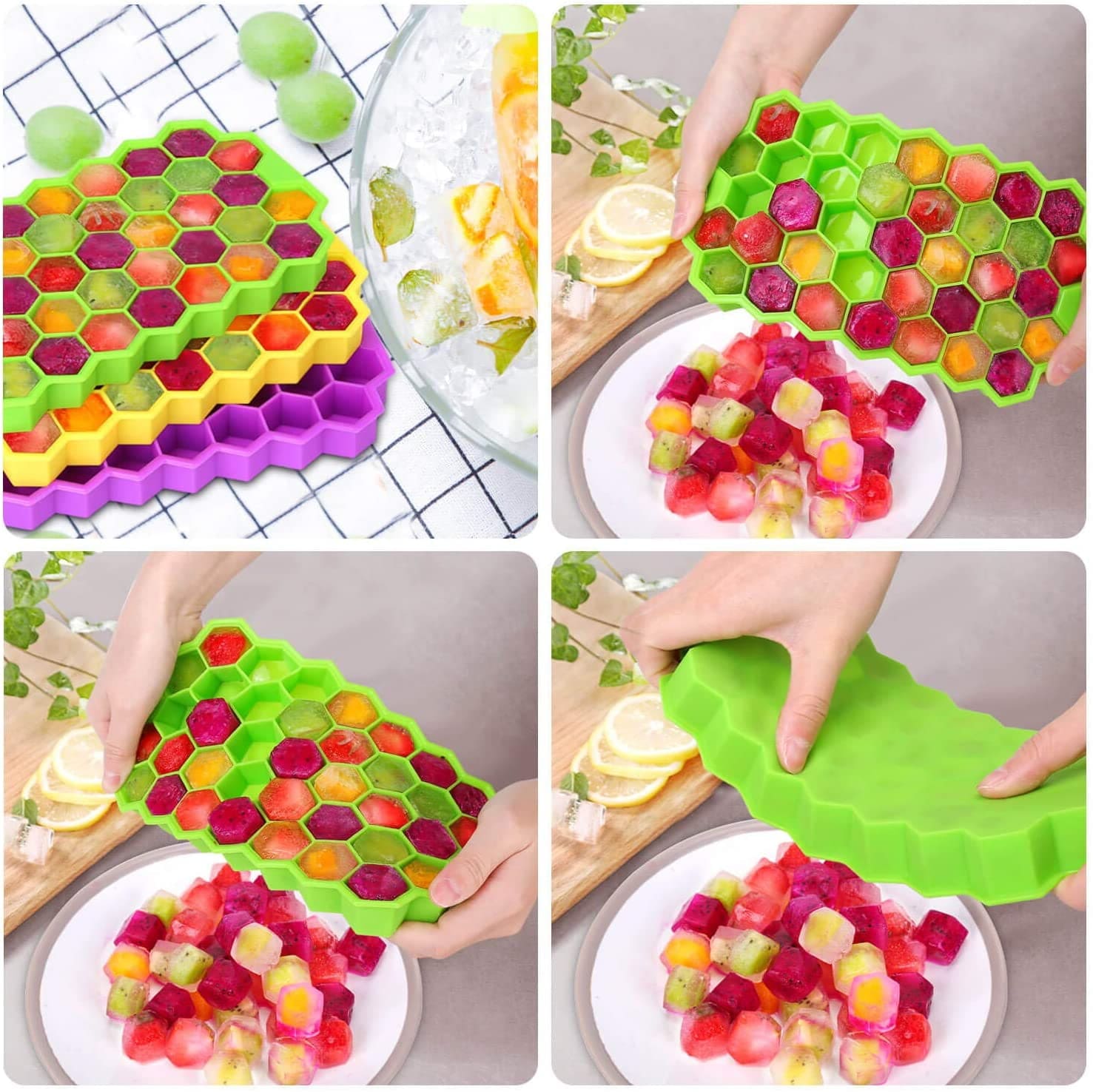 🔹Diseño de forma de panal con 37 rejillas. Se utilizan para alimentos para adultos y bebés, es de fácil liberación de hielo y limpieza, es flexible, duradero, soporta el frio y el calor. Tambien es apto para microondas, freezer y horno.